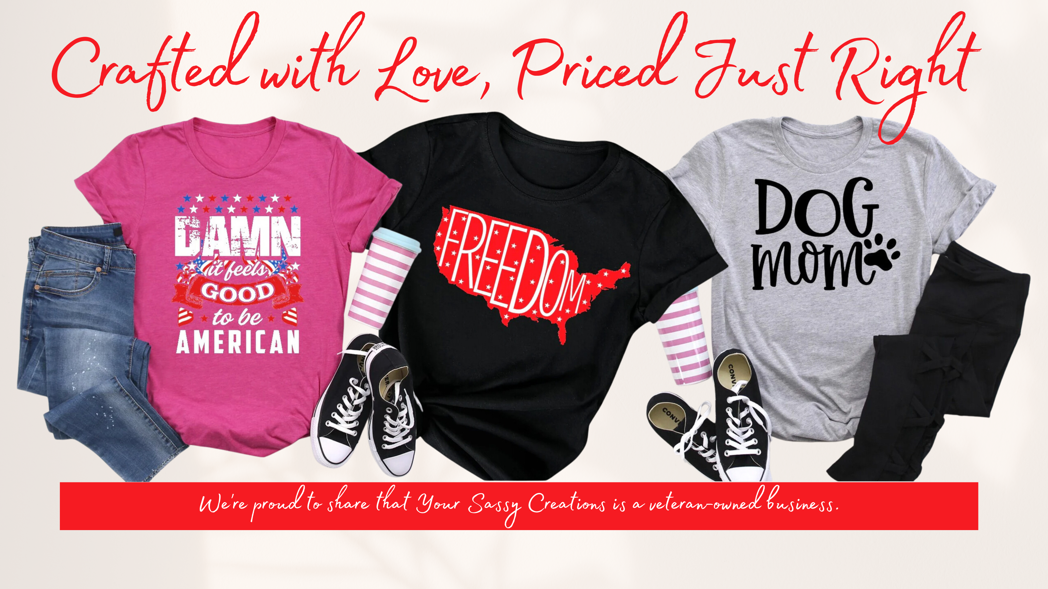 Hi there! I'm Brittany, the heart behind Your Sassy Creations. I started this journey in 2013 when I had my first daughter. As a stay-at-home mom and a cancer survivor, this business is my way of sharing joy and creativity with the world. We are proudly veteran-owned and dedicated to crafting custom apparel, tumblers, license/stall plates, and even car freshies. Thank you for supporting our small business and being a part of our story!