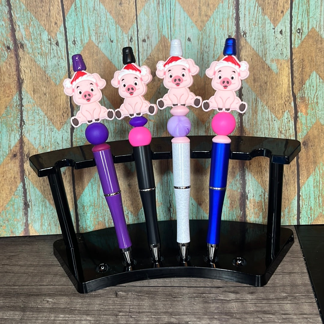 Our Christmas Pigs has a pig sitting with a santa hat on it. These come in Beaded Pens and Beaded Pencils.