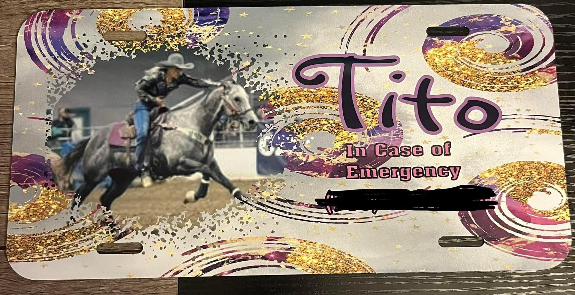 These are great if you stall your horses somewhere else besides your place or stall at rodeos, barrel races, or ropings. They will have a background of your choice, Style of font of your choice, Color of Wording of your choice, Your horses name, A picture of your horse, and Emergency Contact number. I will have you send them to yoursassycreations@yahoo.comÂ